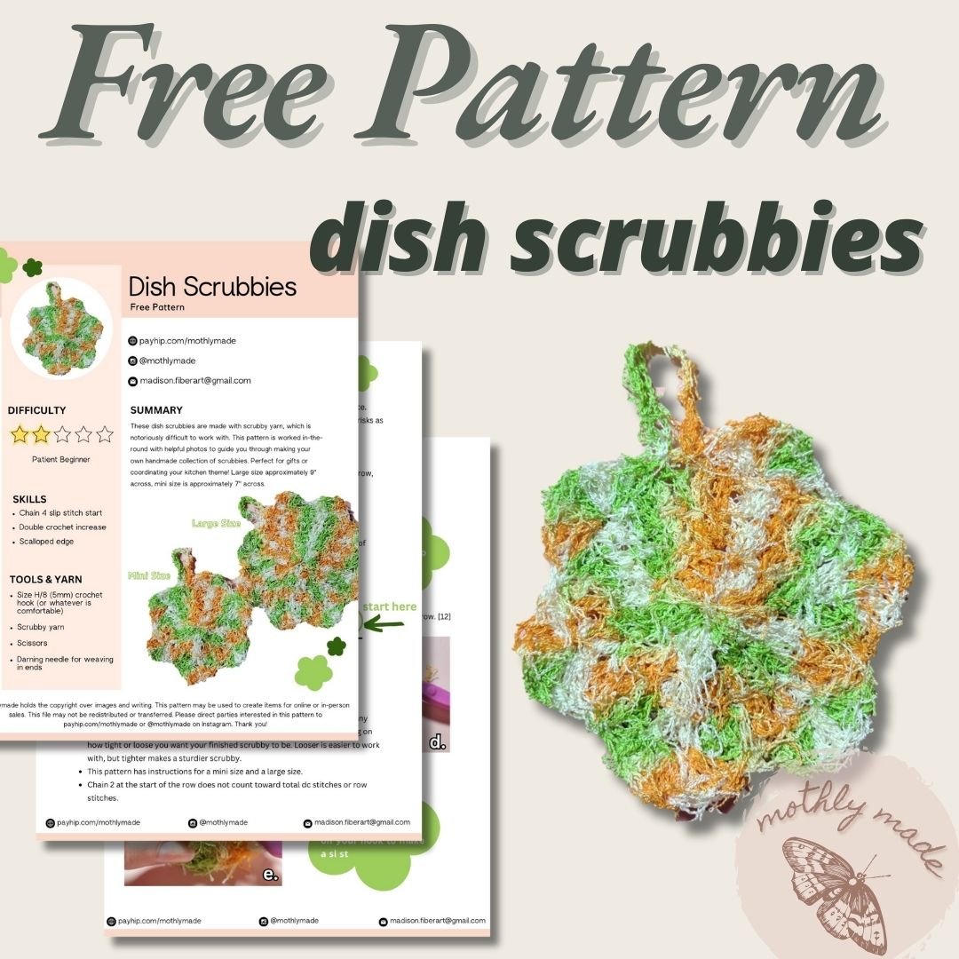 These dish scrubbies are made with scrubby yarn, which is notoriously difficult to work with. This pattern is worked in-the-round with helpful photos to guide you through making your own handmade collection of scrubbies. Perfect for gifts or coordinating your kitchen theme! Large size approximately 9" across, mini size is approximately 7" across.