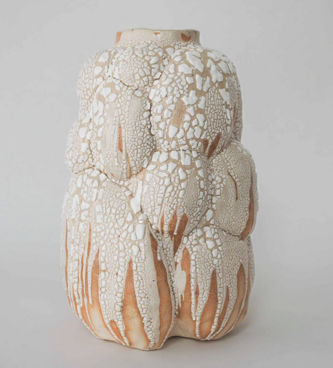 Now, it makes me think of cave formations and deep time. But to be honest, I like going through the deep time wormhole whenever I get the chance to. I will cede that this summary I found might not be the artist's statement, and is more useful as a general description of their work as a whole. After all, these vessels are for sale; not on display. Reading this is not the gut-punch Two Earthlings is. But neither were my partner's thoughts or my own thoughts on it. However, for someone else, the vessel itself is the gut-punch.